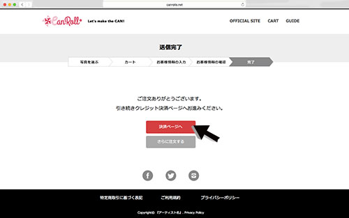 ご登録いただいたメールアドレスに、注文内容をお送りします。